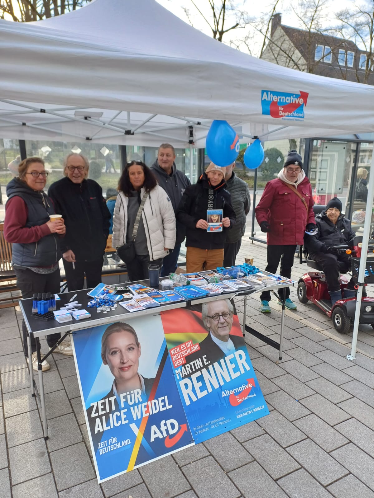Unser Wahlkampf im KV Mettmann läuft auf Hochtouren. Auch am letzten Samstag herrschte emsiger Betrieb an den Infoständen unserer Stadtverbände. Einhelliges Echo: Der Zuspruch zu uns und unserem Programm steigt von Tag zu Tag; die uns zugeneigten Passanten zeigen ganz unverhohlen ihre Sympathie; die Meckerer werden immer weniger. Erstmalig waren wir auch in Heiligenhaus vertreten. Auch unter der Woche geht es weiter; am Freitag, den 14. Februar, ist Valentinstag!